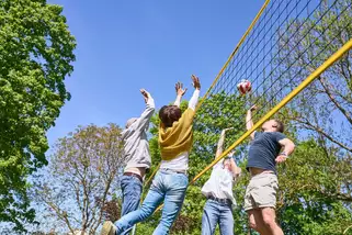 Sport:Fahrräder, Volleyballfeld, Tischtennisplatz