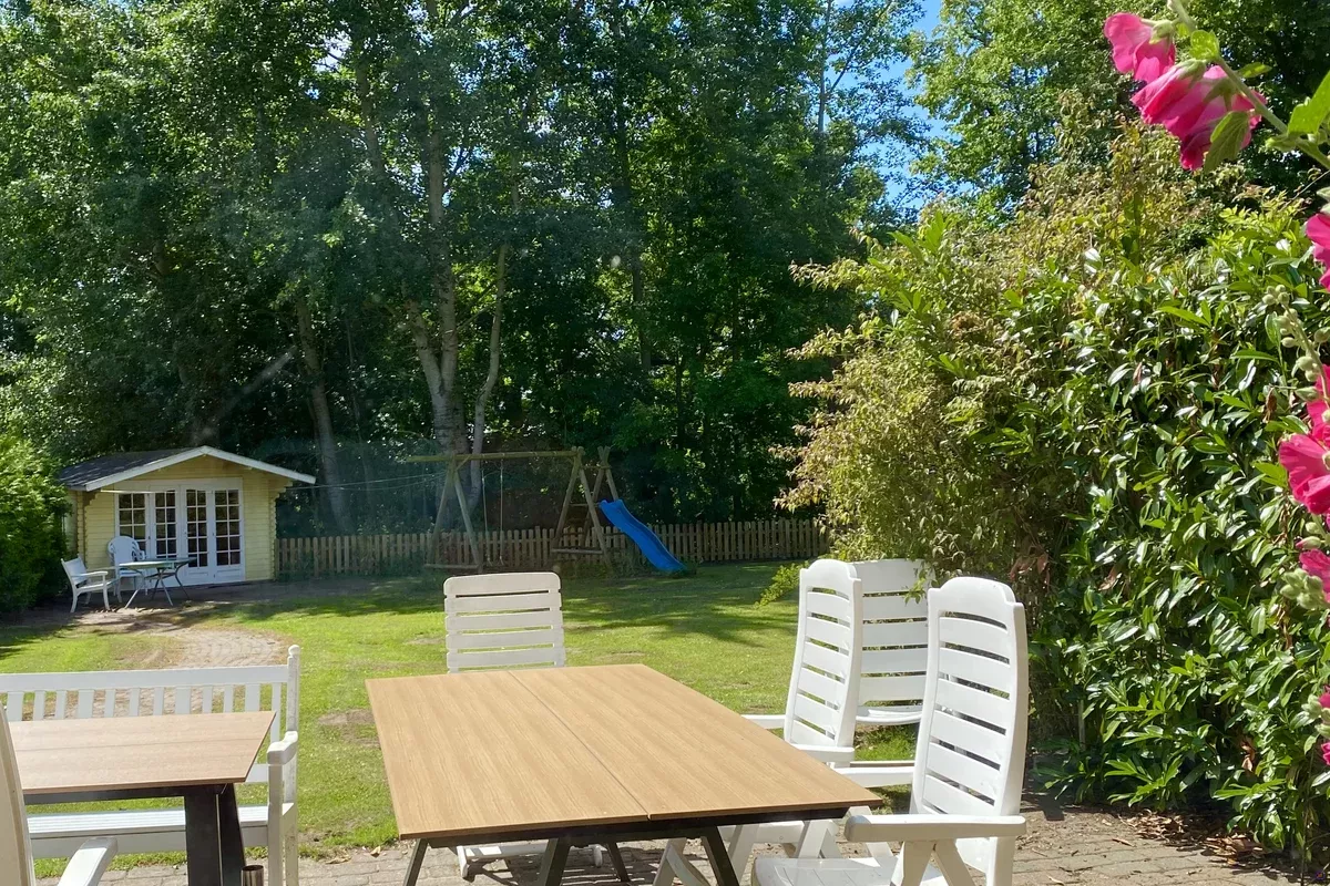 Genießen Sie stimmungsvolle Sonnenuntergänge mit knisterndem Feuer im Feuerkorb. Die Kinder vergnügen sich auf Schaukel, Rutsche und Trampolin. Platz für Ballspiele ist vorhanden. Im Garten gibt es eine Wäscheleine.