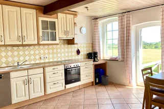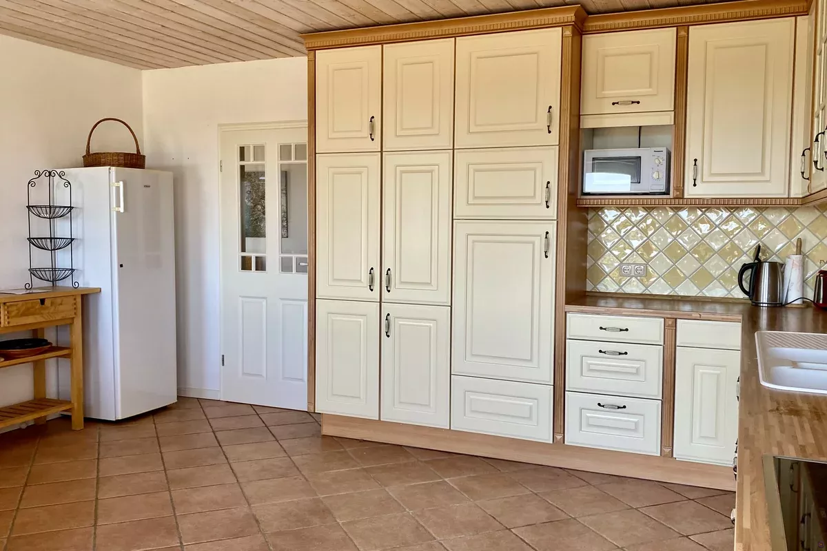 Das Haus verfügt über eine sehr große und ebenfalls sehr gut ausgestattete Landhausküche. Einkaufsmöglichkeiten für frische Brötchen, Eier vom Bauern und Fleisch sowie Wurst befinden sich ganz in der Nähe an einer Tankstelle.