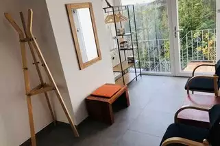 Im Gemeinschaftsbereich befinden sich ein Tischkicker, eine Tischtennisplatte und eine Sauna, sowie eine große Terrasse mit Feuerschale.