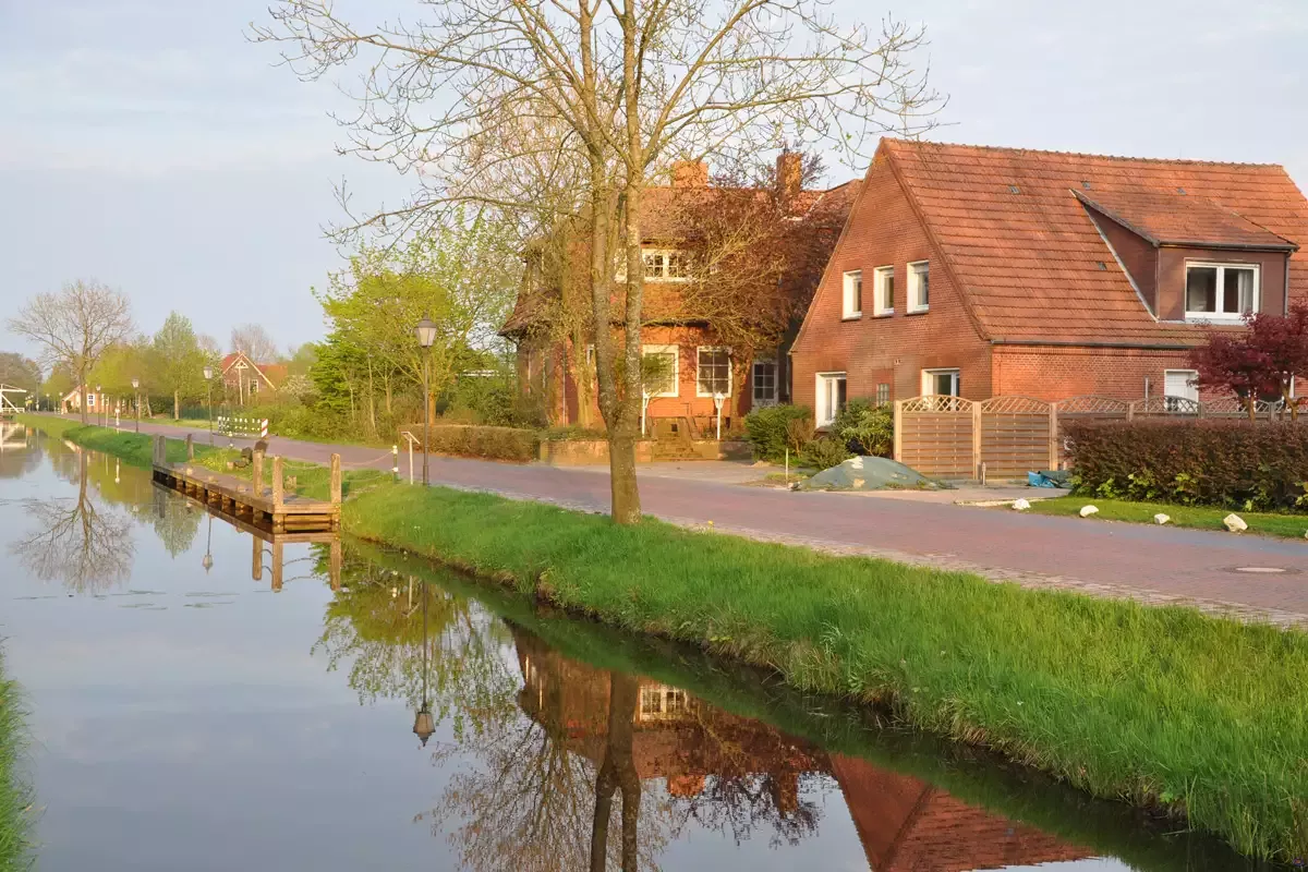Unsere Unterkunft liegt direkt an der Deutschen Fehnroute: Radtouristen radeln hier an schnurgeraden Wieken entlang und überqueren Klappbrücken. Auf der Strecke liegen zahlreiche Zeugen der Vergangenheit. Dazu gehören prächtige Windmühlen, funktionsfähige Schleusen, uralte Backsteinkirchen und hübsche Gulfhäuser. Deiche und Wiesen, Wallhecken, moorige Naturschutzgebiete und Wasserläufe prägen die Fehnlandschaft.