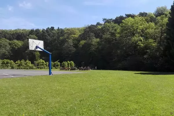 Sportplatz, Basketballplatz, Volleyballplatz, Bolzplatz mit Toren und separater Torwand, Tischtennisplatte, große Spielwiese mit angrenzendem Bach, Grillplatz mit allem, was dazu gehört. Sitzplätze für gemeinschaftliche Aktionen und für persönlichen Rückzug