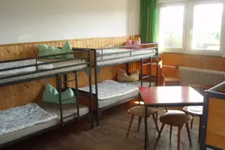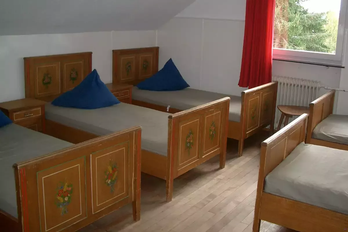 Wenn im Gruppenraum abends gefeiert wird, dringt die Musik nicht bis in die Schlafräume. 4x1 Bett, 3x2 Betten, 1x3, 3x4, 1x5, 3x6, 2x8 Betten. Sanitärausstattung: 3 Anlagen mit 5 Duschen, 1 Duschraum mit 4 Brausen, 2 Waschräume mit 4 Wc´s, 6 Einzel-WC´s.