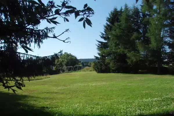 Von 3 Schlaf-Bereichen ist ein separater Trakt mit EZ, 2 DZ sowie D/WC für Seminar-und Gruppenleiter vorgesehen. Sonst überwiegend einfach ausgestattete Mehrbettzimmer. Eine großzügige Südterrasse sowie die große Freizeitwiese mit Feuerstelle und der geräumige Spiel-, Hof-Parkplatz mit Grillstelle, Tischtennis bieten vielerlei Möglichkeiten auf dem 50ar Grundstück. 22 Parkplätze auf dem Hof möglich. Büro: WLAN, TV, Video, DVD.