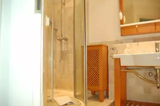 Es gibt eine kleine Stufe von 4 Schritten, um in die Wohnung zu gelangen. Vom geräumigen Flur aus gelangen Sie in alle anderen Räumen. Es gibt ein Wohnzimmer mit Doppel-Esstisch mit 10 Stühlen und eine gemütliche Sitzecke, eine moderne gut ausgestattete Küche, ein Badezimmer mit Dusche und WC, ein zweites separates WC und 3 Schlafzimmer. 1 Schlafzimmer mit zwei Einzelbetten, 1 Schlafzimmer mit zwei Einzelbetten und einem Etagenbett (die ersten beiden Schlafzimmern sind miteinander verbunden) und 1 Schlafzimmer mit 4 Einzelbetten.
