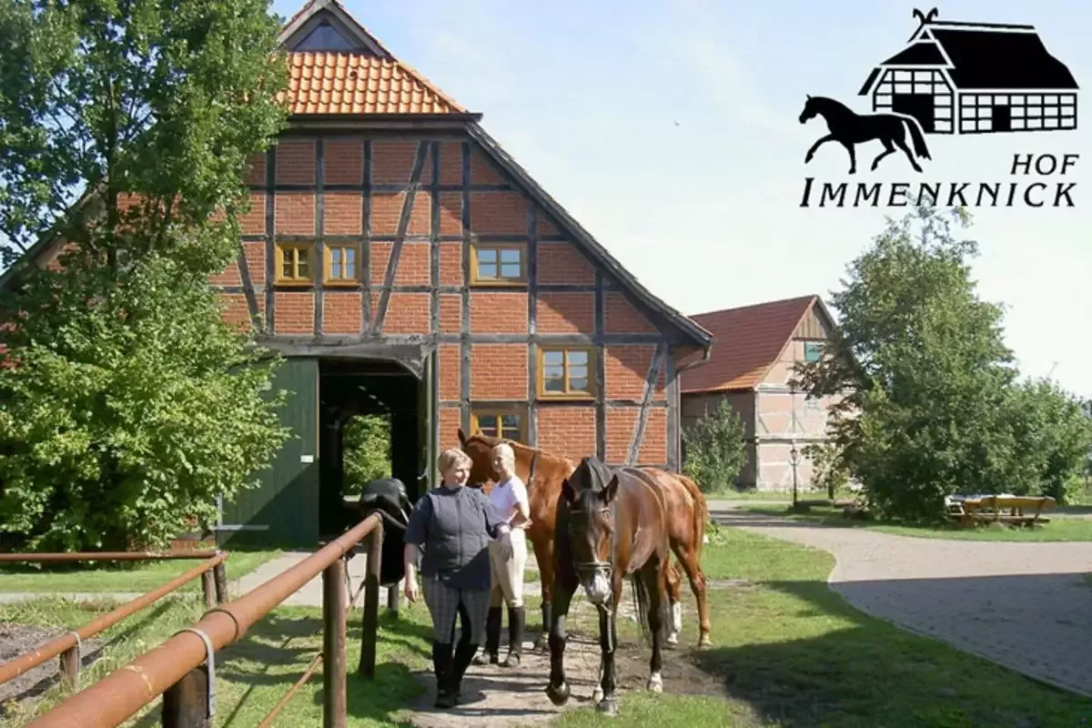 Unser großzügiges Ferienhaus, ruhig am Dorfrand gelegen, bietet Platz für mind. 6-8 Personen, (die untere Etage ist rollstuhlgeeignet, auf Anfrage bieten wie auch Hilfe/Assistenz im Urlaub an)). Die gemütlichen, im Landhausstil neu eingerichteten Ferienwohnungen und Doppelzimmer im Obergeschoss des renovierten Fachwerkhauses (mit gemütlichem Aufenthaltsraum mit Kamin) stehen unseren Gästen auf Hof Immenknick das ganze Jahr für Reiterferien, Familienurlaube mit Kindern, Tagungen oder Seminare zur Verfügung.