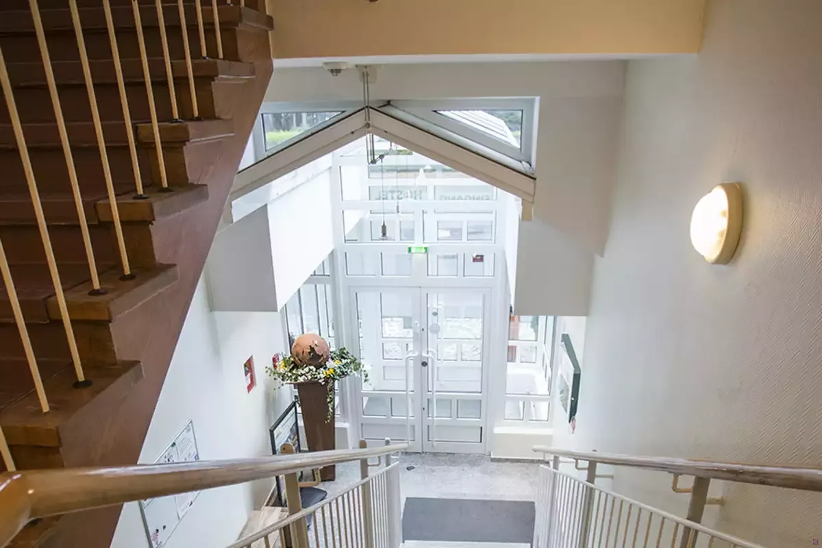 Im Erdgeschoß befindet sich eine gemütliche Lounge, ein Fernsehraum sowie für unsere Kleinen ein Bällebad. Im Dachgeschoß findet man unseren geräumigen Jugendraum mit Tischtennisplatten und Dartscheibe