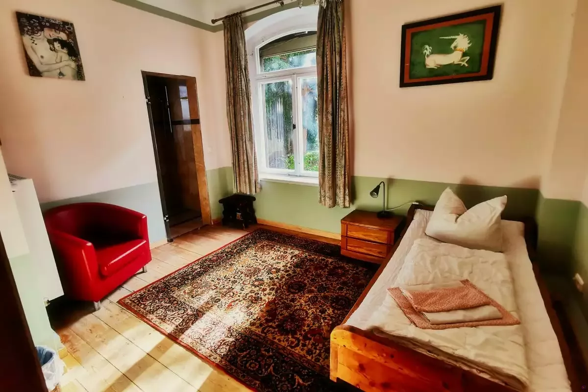 Es gibt Einzel- und Mehrbettzimmer, welche auch als Privat- und Familienzimmer genutzt werden kommen. Alle Zimmer sind kreativ und individuell eingerichtet. Sie sind mit Etagenbetten ausgestattet. Wir bieten ausschließlich Nichtraucherzimmer an. WLAN ist vorhanden und kostenfrei. Ein Speiseraum und ein gemütlicher Aufenthaltsraum sind vorhanden und können jederzeit genutzt werden. Beide Räume können auf Wunsch auch als Seminarräume genutzt werden (Seminartechnik ist NICHT vorhanden). Es gibt eine kleine Teeküche mit kleiner Kochgelegenheit, Kühlschrank, Mikrowelle, Geschirr und Besteck.