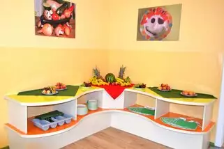 Obst, Wasser und Tee steht Kindergruppen in unserem Buffet-Raum ganztägig zur Verfügung!