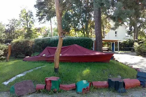 Unser umzäunter naturnaher Spielgarten ermöglicht durch seine Beschaffenheit vielseitige Spiel-, Entdeckungs- und Erholungsmöglichkeiten. Es gibt zahlreiche Spielgeräte, Hängematten, Sandkasten mit kleiner Matschstrecke, Volleyballnetz, Tischtennisplatte, Baumstammmikado, Feuerstelle, Holztippi, Spielboot und viele Sitzgelegenheiten. Es stehen unseren Gästen zudem auf Wunsch 8 Fahrräder für Kinder, 3 Fahrräder für Erwachsene sowie ein behindertengerechtes Tandem, inklusive Fahrradhelme und Schlösser zur Verfügung.