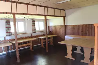 Im Haus 1: Raum 1 für 45 Pers., Raum 2 für 30 Pers.; zusätzlich Turnhalle (keine Spielgeräte, wie Bälle)
