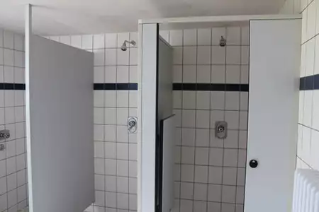 Je Haus: Küche, geschlechtergetrennte Waschräume, Toilettenanlagen und Duschen.