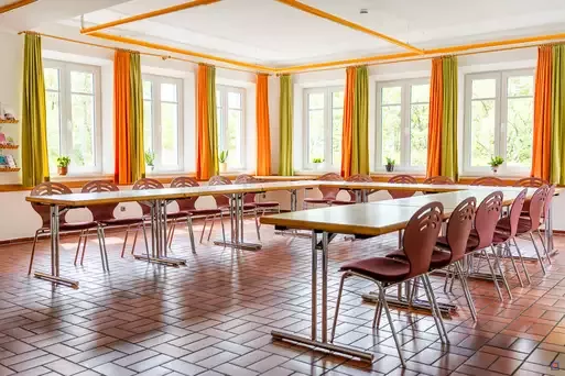Die Unterkunft ist teilweise behindertengerecht: Speise- und Seminarraum, alle Zimmer im Erdgeschoss, Terrasse, Küche, Sanitärbereich im Erdgeschoss