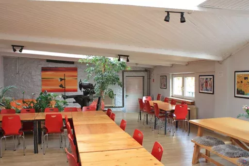 Unseren Gästen stehen gemütliche Aufenthaltsräume mit Küchen zur Verfügung. Die Gruppenräume können auch als Seminarraum genutzt werden und es besteht die Möglichkleit auf dem Gelände in der Nachbarschaftetage zusätzliche Seminarräume anzumieten. In der Gäste-Etage stellen wir gerne unseren Gruppen Seminartechnik wie Beamar, Flip-Chart etc. kostenlos zur Verfügung.