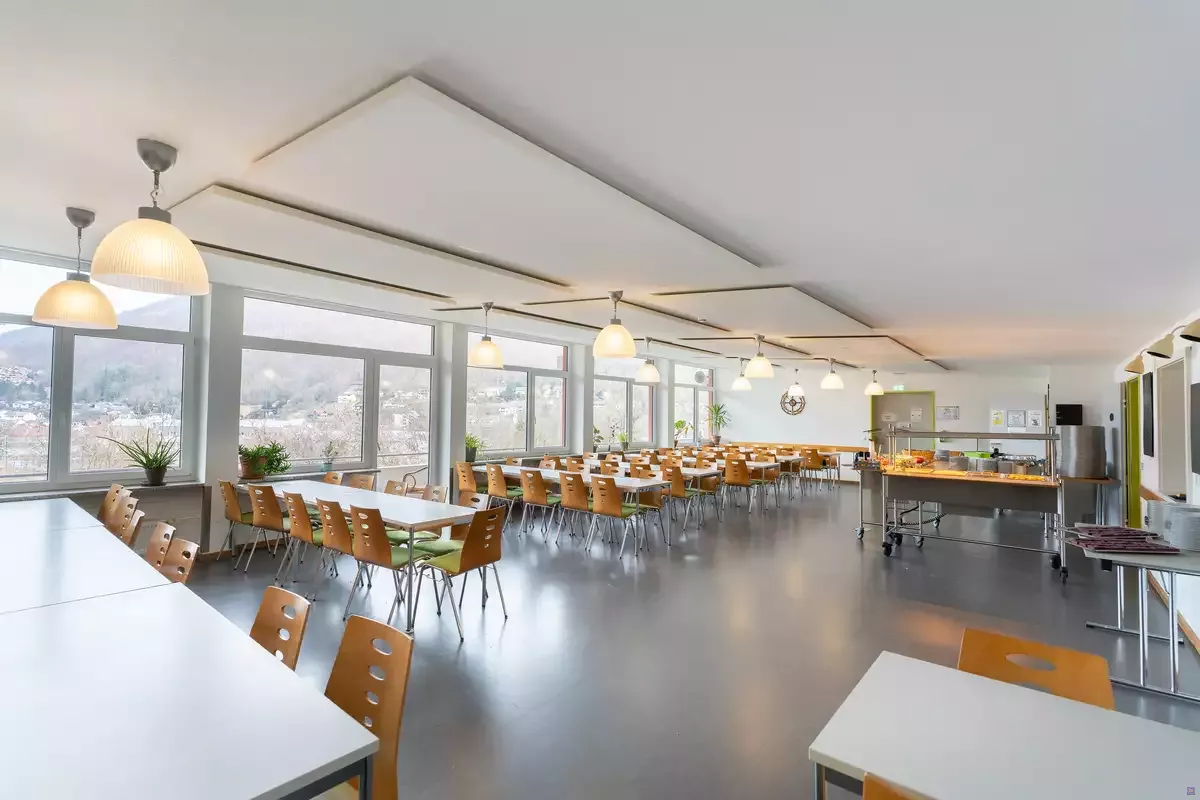 - Speisesaal ist stufenlos und mit unterfahrbaren Tischen ausgestattet