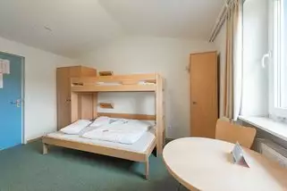 • Zimmerausstattung: Etagen- und teilweise Einzelbetten, Schränke und Tisch mit Sitzgelegenheit