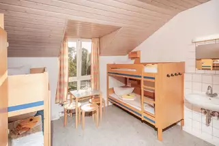 125 Betten in 30 Zimmern, vorwiegend Vier- und Sechsbettzimmer. Teilweise sind je zwei Zimmern Dusche/WC direkt zugeordnet, teilweise Etagenduschen/-WCs. Vier Betreuerzimmer mit Dusche/WC. Vier Gemeinschaftsräume mit 25-60 Plätzen, Aufenthaltsraum für Betreuer. Tischtennis, Sportplatz, Spielplatz
