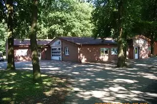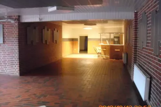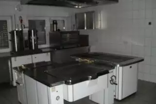 Sanitäre Anlagen mit Dusche und separaten Toiletten (für Gruppenleiter extra), Küche mit großer Kipppfanne und großen Herdplatten, große Tee- und Kaffeemaschine, Spülmaschine vorhanden (kein Geschirr) 3 begehbare Kühlzellen z.T. mit Regalen, Abstellraum. Dazu einen großen Gruppenraum für ca. 80 - 100 Personen.