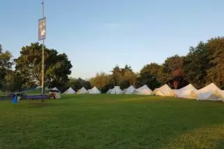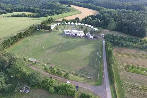 1,5 ha Freifläche mit angrenzendem Wäldchen stehen zur freien Verfügung. Die notwendigen sanitären Anlagen (separate Duschen/WC für Mädchen und Jungen) sowie die entsprechenden Stromanschlüsse (Normal- und Starkstrom) sind vorhanden. Der Sportplatz (Rasenplatz) kann außerhalb der Spiel- und Trainingszeiten unserer Mannschaften mitgenutzt werden.
