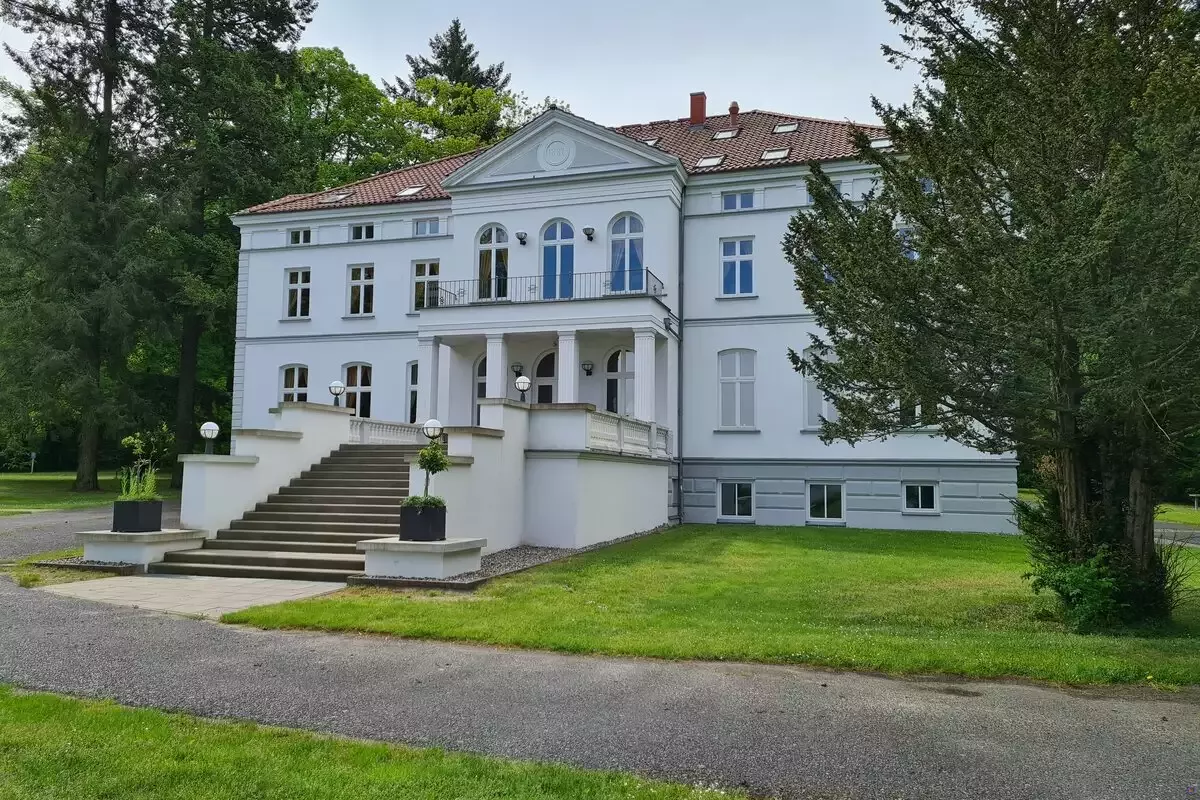 Jugendschloß mit 85 Betten: große Selbstversorgerküche, Speisesaal, Mehrbettzimmer mit jeweils eigenem Bad, 3 Apartments mit jeweils eigener Küche und Bad, große Seminar-Tagungs-Feier-Gruppensäle, herrliches Außengelände (Schloßpark mit Feuerstellen, Freizeitbeschäftigung, Seezugang mit Teehaus und Badeinsel)