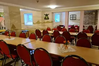 Im Jugendschloß ist Platz für bis zu 80 Personen. In der großen, modern ausgestatteten Küche wird die Selbstversorgung zum Hochgenuss. Auf Wunsch ist aber auch eine Voll-/Teilverpflegung möglich. Große freundliche Räumlichkeiten bieten Möglichkeiten zur vielfältigen Nutzung für Bildung, Begegnung und Feierlichkeiten.