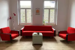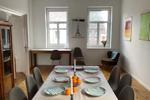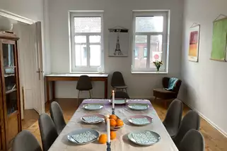 Gemeinsam essen, planen, feiern, Yoga und anderes. Bücher und Gesellschaftsspiele vorhanden.