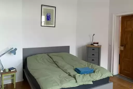 Doppelbett (1,60 x 2 m), Schreibtisch, sehr großes Zimmer, aber sehr gemütlich.