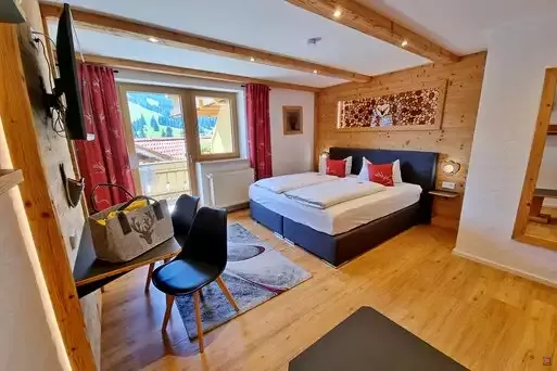 Unser Highlight ist die neugestaltete, 160 m² große Wellness-Suite "Heimatgfühl". Drei separate Doppelzimmer mit Boxspringbett, Dusche/WC und eigenem Balkon bieten Ihnen Privatsphäre.