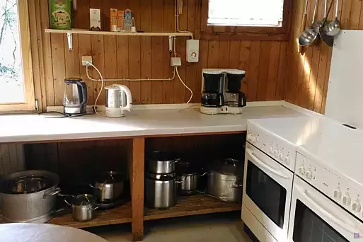 Platz für 10 Personen, fließend Wasser, Strom, Sanitäranlagen, Kochstelle, Dusche, Aufenthaltsraum
