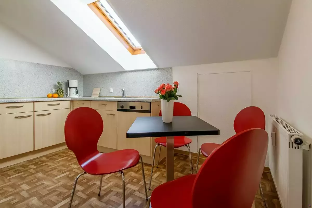 Sehr großzügig sind die großzügigen Badezimmer sowie zwei weitere Duschräume und zwei zusätzliche Gäste-Toiletten. Ein weiteres Highlight hier ist die Regenwalddusche. In zwei gut ausgestatteten Küchen oder am überdachten Grillpavillon können Sie nach Herzenslust kochen. Ihr Essbereich ist mehr als großzügig mit Schreinergefertigten Eichenmöbeln ausgestattet. Alle 20 Personen finden so problemlos Platz. Hier sorgt für echte Schwarzwälder Gemütlichkeit der Kachelofen.