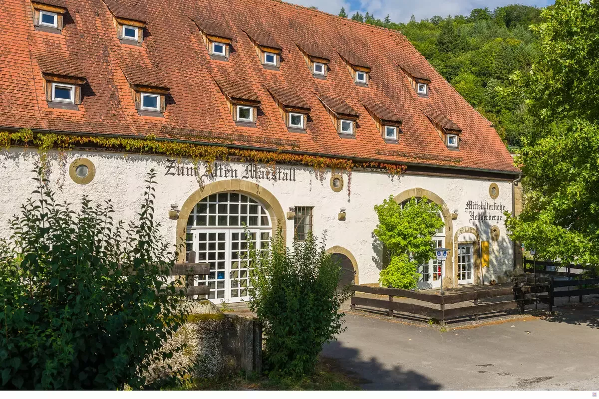 - Die Mittelalterliche Herberge befindet sich ca. 10 Gehminuten unterhalb der Burg Guttenberg.