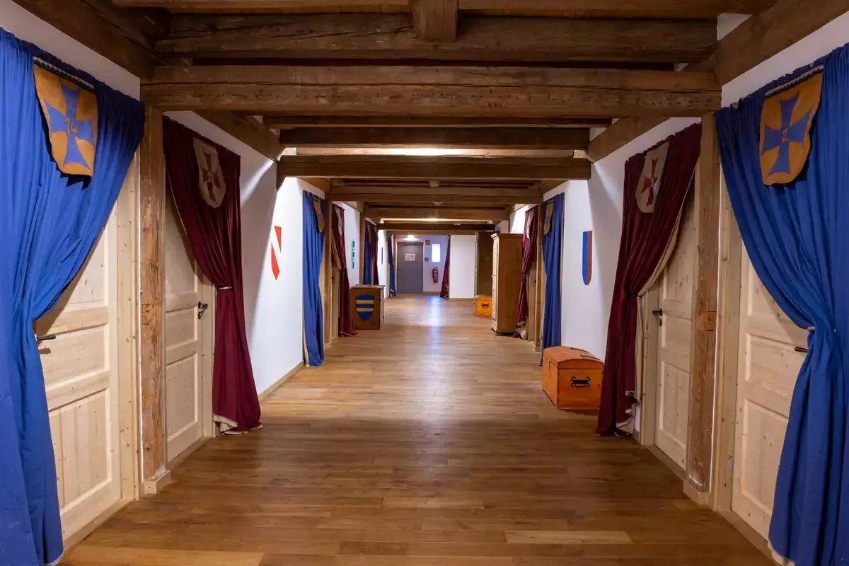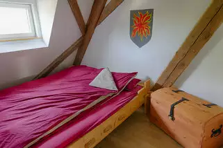 Nach diesem Motto haben wir unsere Kemenaten eingerichtet. Sie sind ausgestattet mit einem Doppelbett, einer Truhe und einer Heizung. Mit einem Zustellbett können maximal 4 Personen in einer Kemenate übernachten.