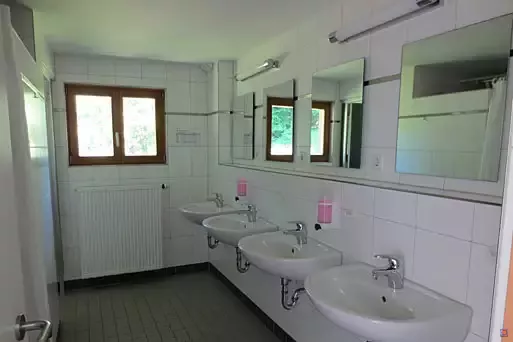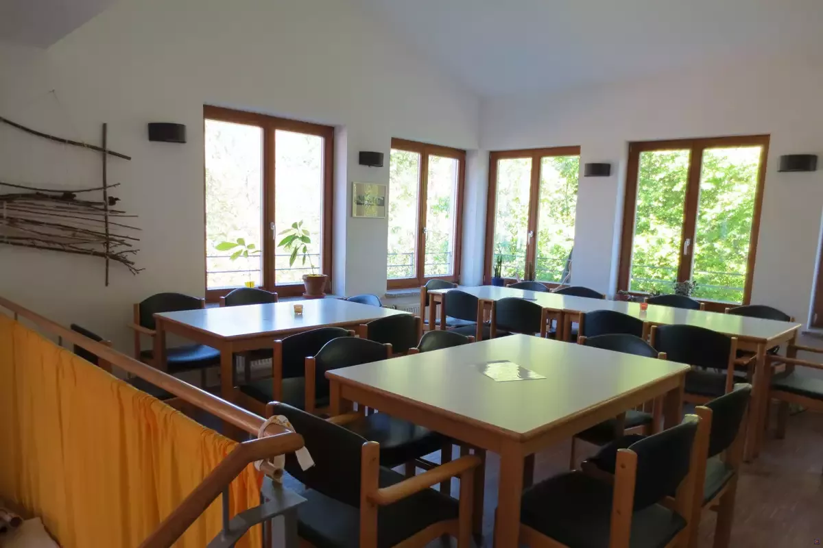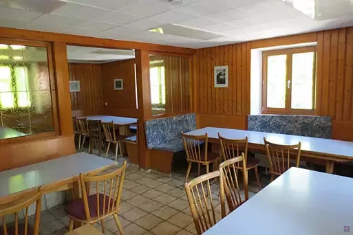 Im 1. Obergeschoss ist der Dusch- und WC-Bereich sowie drei Zimmer mit 10 Betten (2x2, 1x6); im 2. Obergeschoss ist Platz für 25 Personen in 5 Zimmern (2 Schlafräume mit je 8 Betten, 1x4, 1x2 und 1x3). In den Wintermonaten kann der Aufenthaltsraum der Gaststätte ebenfalls als Seminarraum genutzt werden.
