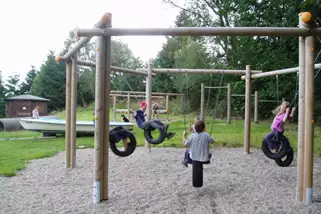 Im Außengelände befindet sich eine Feuerhütte, eine Feuerstelle, ein Spielplatz mit Liegewiese sowie ein Zeltplatz mit extra Duschen, Toiletten und einer Küche. Die solarthermische Warmwasserversorgung sorgt auch im Winter für Behaglichkeit und ist doch nur ein Baustein für umweltfreundliches Leben und Arbeiten im Naturfreundehaus Bad Emstal. Der Clou des Hauses ist das historische Backhaus, in dem Brot wie zu Urgrossmutterszeiten gebacken wird.