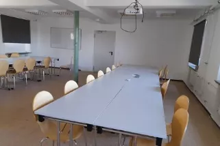Seminarraum separat anmietbar. Ausstattung mit stationärer Großtafel, 2 mobilen Whiteboards, Beamer, 20 Stereolupen sowie Bestimmungsliteratur für Pflanzen- und Tierbestimmung.