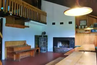 Unten im Haus stehen ein großer Gemeinschaftsraum mit Kamin und Kachelofen, eine Küche sowie ein Seminarraum zur Verfügung. Die frisch renovierten Toiletten sowie zwei Duschen werden gemeinsam mit den Zeltgästen genutzt. Auch ein behindertengerechtes Bad steht zur Verfügung. Das Haus bietet Schlafplätze für bis zu 20 Personen auf einer offenen Schlafgalerie sowie einen eigenen Schlafraum mit zwei Betten. Am Haus befindet sich zudem ein Holzhackplatz mit großem Holzlager.