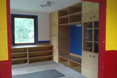 Gruppenraum 1 ist mit Tischen und Stühlen ausgestattet.