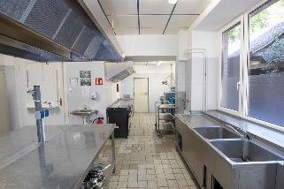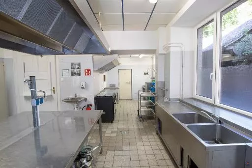 Die Küche ist voll ausgestattet und ermöglicht das Kochen für große Gruppen.