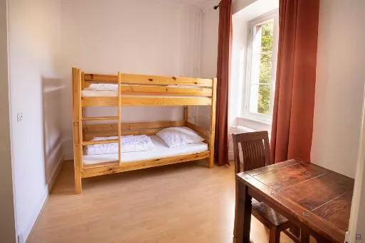 Im 1. OG sind die 8 Zimmer (3x2, 4x4, 1x6 Betten) alle mit DU/WC und Stockbetten ausgestattet.