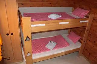 Rustikale 2-Bett und Mehrbettzimmer (Einzelzimmer für Betreuer) mit Dusche+ WC im Haupthaus & 11 Bungalows mit 4 Zweibettzimmern oder 2 Vierbettzimmern, WC+ Waschbecken tweilweise Duschen, moderne Gemeinschaftsdusch- und -sanitäranlagen im Souterrain des Haupthauses. Alle Bungalows sind beheizbar. Multifunktionssaal mit Empore, weitere Veranstaltungs- und Seminarräume vorhanden.