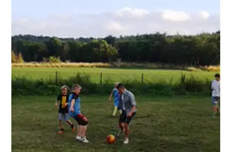 Auf unserer Anlage findet ihr einen Bolzplatz, Tischtennis, Kicker, Spielzelt, Boulderingwand, Bogenschießanlage sowie eine Niederseilgarten.