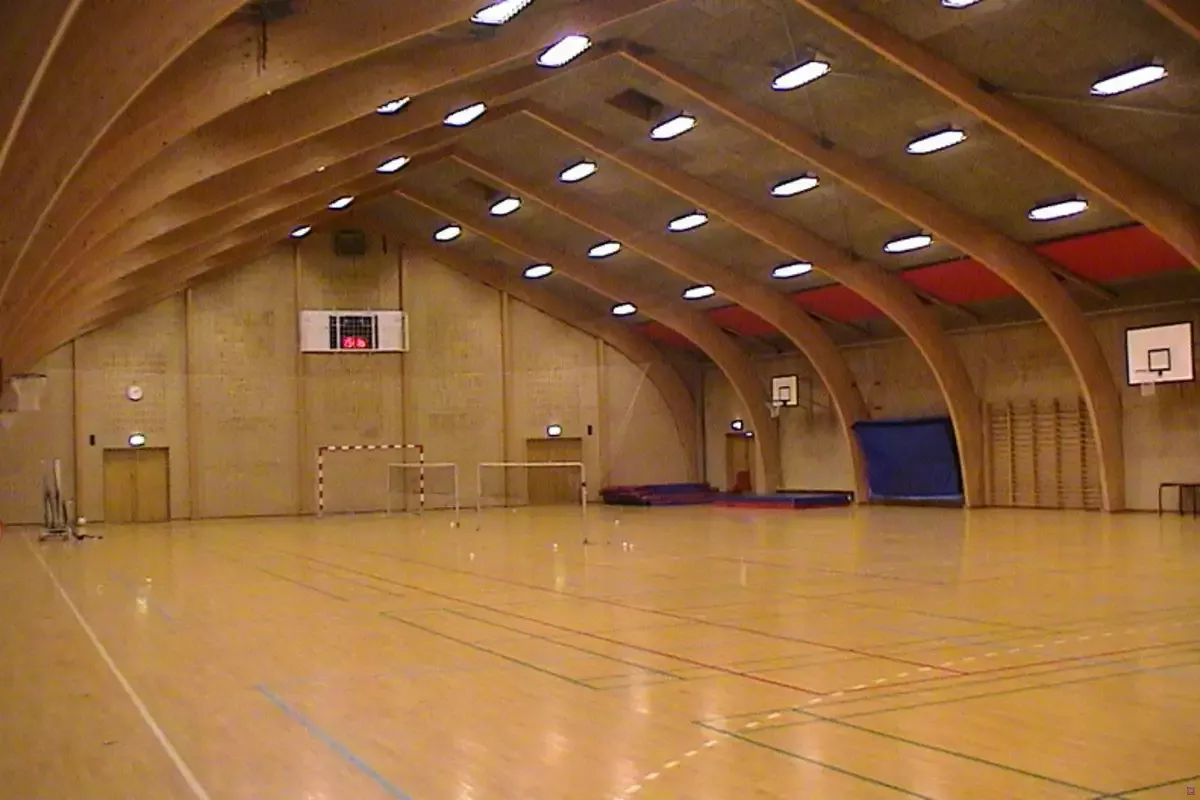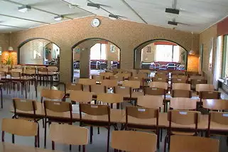 In den Gebäuden gibt es mehrere Aufenthaltsräume sowie eine große Sporthalle.