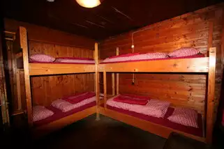 Die Hütte verfügt über mehrere Matratzenlager, teilweise mit Stockbetten, verteilt auf 2 Etagen. Die Betten sind mit einem Schonbezug und Wolldecken ausgestattet, allerdings liegt für ihren Aufenthalt keine frische Bettwäsche bereit. Wie auf allen Alpenvereinshütten ist es obligatorisch, dass Sie eigene Hüttenschlafsäcke bzw. eigenes Bettzeug mitbringen.