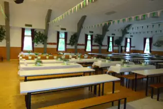 Die Schützenhalle Elpe eignet sich besonders für Ferienlager mit bis zu 100 Kindern. Die Halle ist mit einer Küche und angrenzendem Speiseraum, einer großen Theke, Duschen und Toiletten sowie einer geräumigen Bühne ausgestattet.
