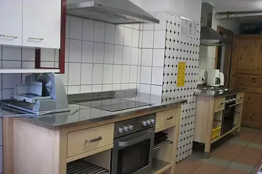 Dafür steht eine gut ausgestattete Küche mit 2 E-Herden, Kühlschrank, Gefrierschrank und Industrie-Spülmaschine zur Verfügung.