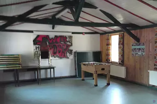 Bolzplatz (mit Fußballtor), Lagerfeuerplatz, fahrbare Tischtennisplatte, Outdoor-Spielgeräte, Tischkicker, Brett- und Kartenspiele, Bücher, Zeitschriften