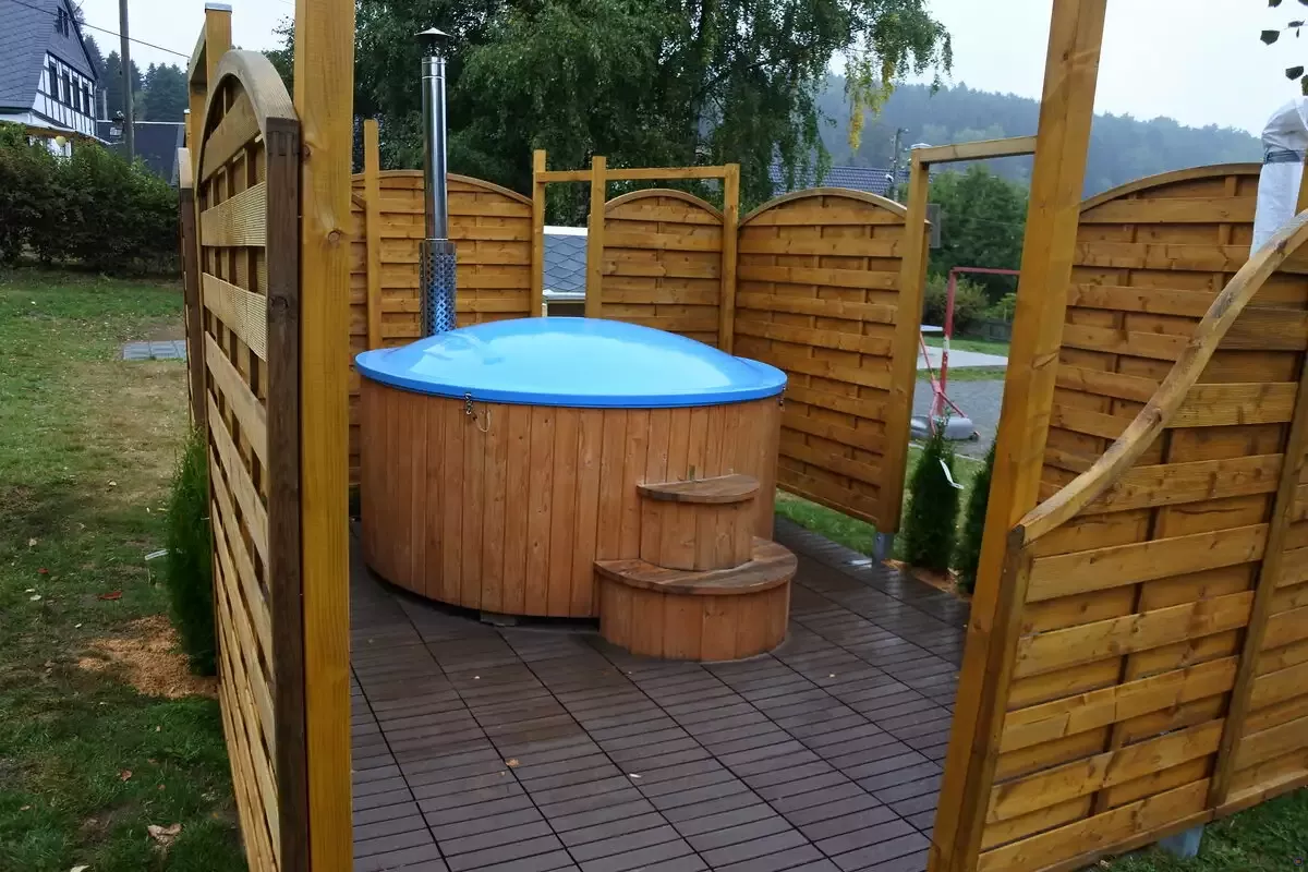 Sauna & beheizbares Badefass laden zu Wellness ein!