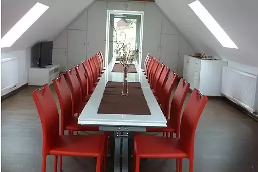 Neben dem Speiseraum gibt es einen 2 weitere Gruppen-/Tagungsräume. Beamer + Leinwand stehen zur Verfügung. Sehr beliebt ist auch unsere Sauna. Auf dem riesigen Außengelände laden Liegewiese, Lagerfeuer- und Grillplatz, Grillhütte und Gartenmöbel zum gemütlichen Verweilen und Entspannen ein. Tischtennisplatte, Billardtisch, Fußballkicker, Spielplatz und Sportplatz mit Basketballkörben stehen für Sportbegeisterte selbstverständlich auch zur Verfügung.