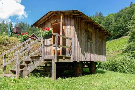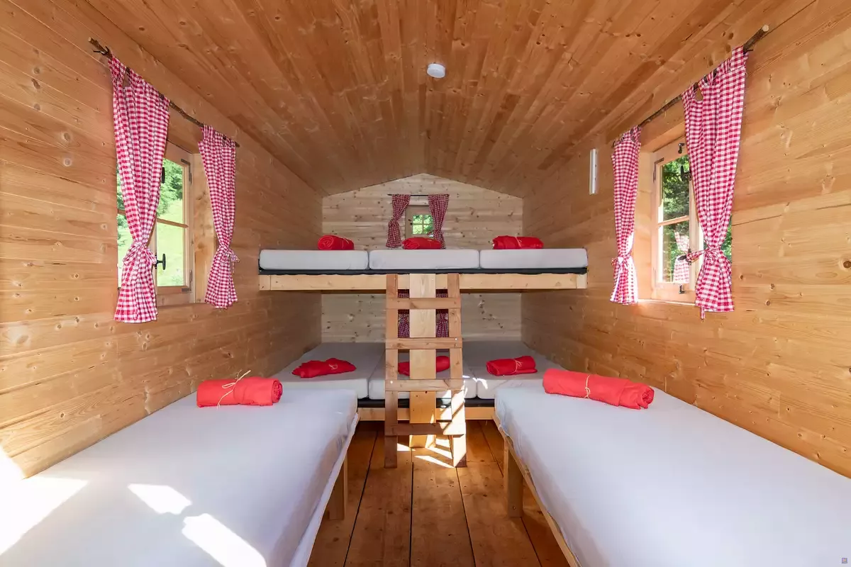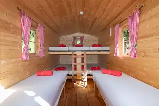 sowie im angrenzenden urigen Übernachtungswagen (Schlafsack)