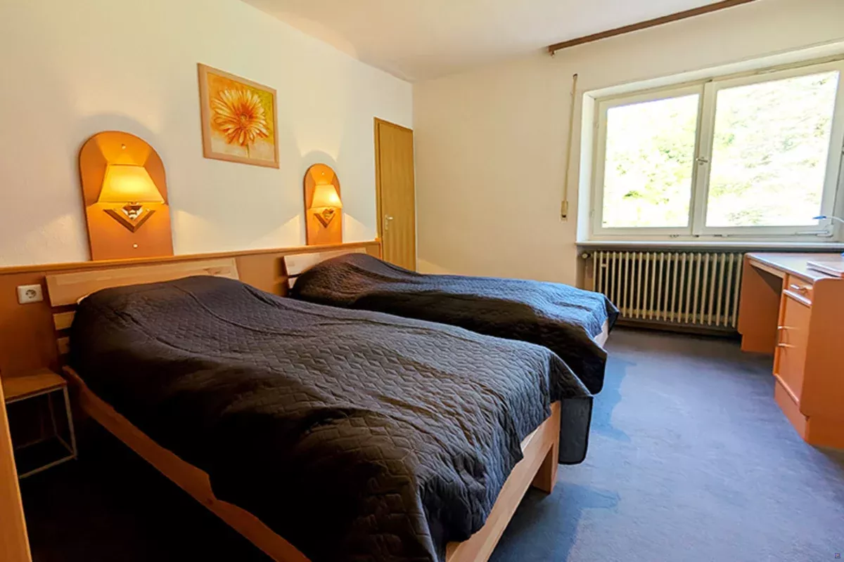 Im Haus befinden sich insgesamt 16 Gästezimmer auf drei Etagen mit verschiedenen Belegungsoptionen, von Einzelzimmern bis Mehrbettzimmern. Ein Teil der Zimmer verfügt über eigenes Bad, weitere nutzen gepflegte Gemeinschaftsbäder. Dadurch entsteht Flexibilität in der Preisgestaltung und in der Zusammensetzung der Gruppe.
